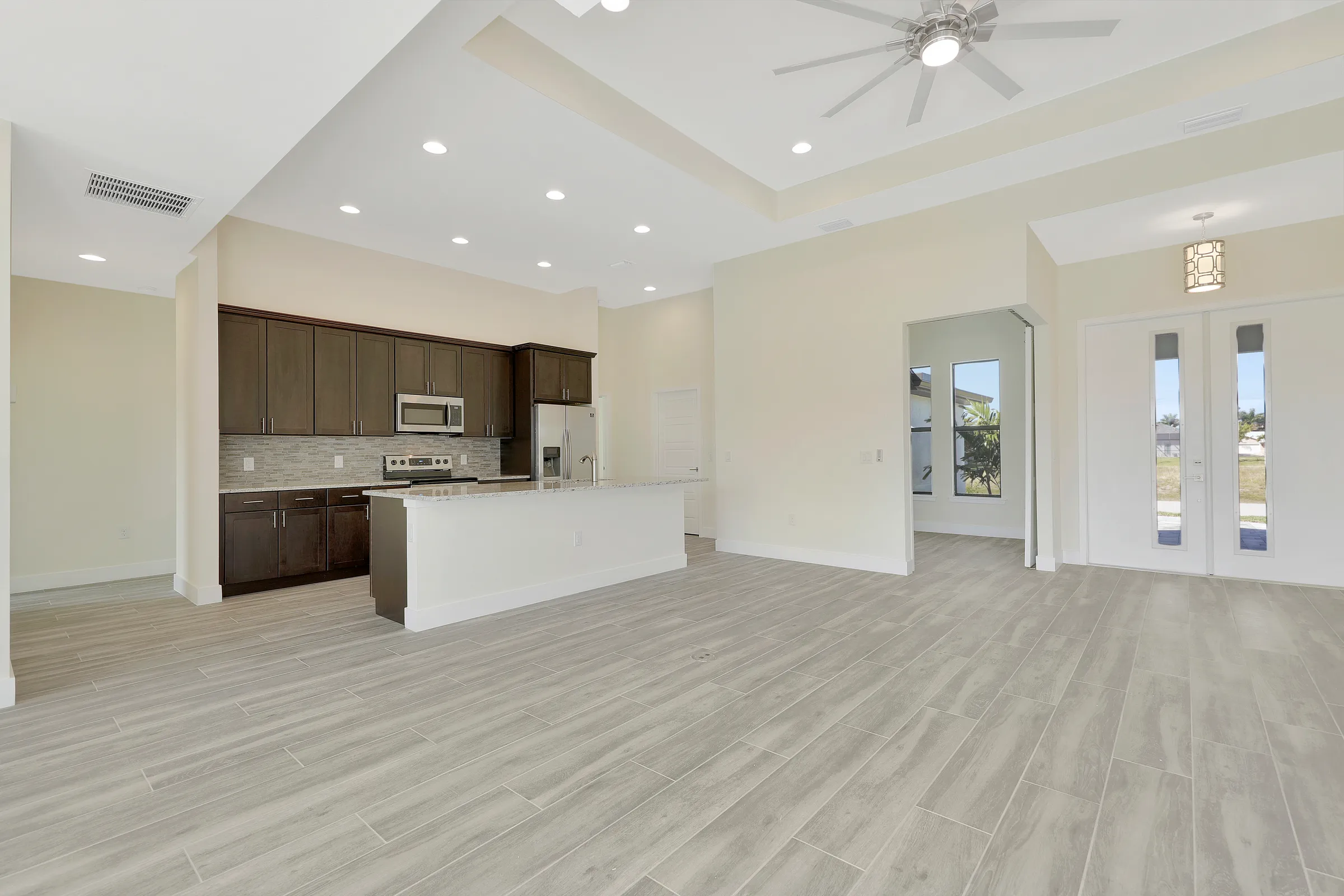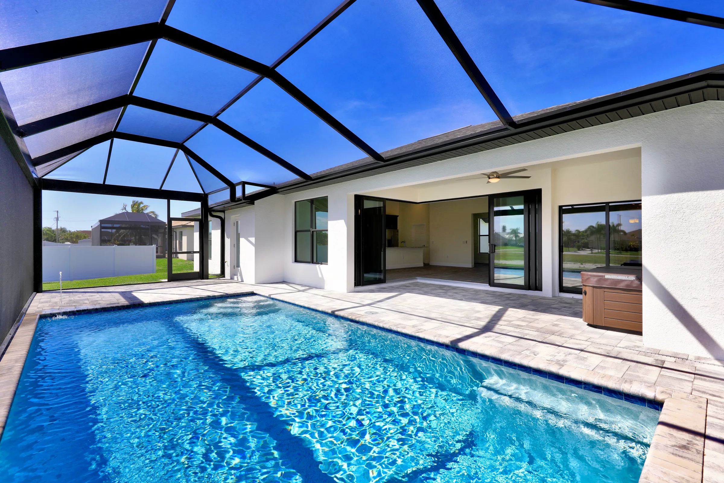 We are pleased to offer you our Janus series of homes with architecture and size between our Adonis and Pegasus series of homes. At 1,700-1,800 square feet of living, and 3 or 4 bedroom options, this home becomes a great home without being too large or too small. With this open floor plan with modern touches you find the popular 90-degree corner slider that invites you to an open lanai with high ceilings. This home gives you the feel of much larger homes with the high living and kitchen ceilings as well! As you walk in to this home through the front doors you will also find a corner duel barn door to the office. The master suite will not disappoint you with its large bedroom with a tub and open shower complemented by 2 closets and a separate water closet. Interested in adding a pool? This home’s guest bathroom has a door to the rear already offering the perfect pool home setup.