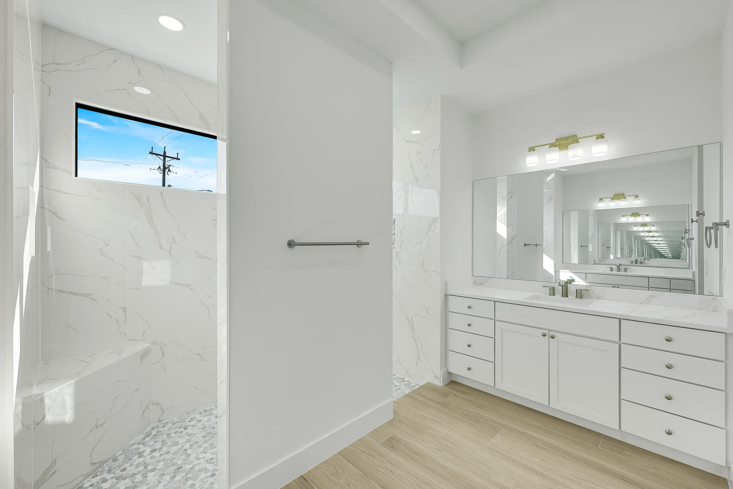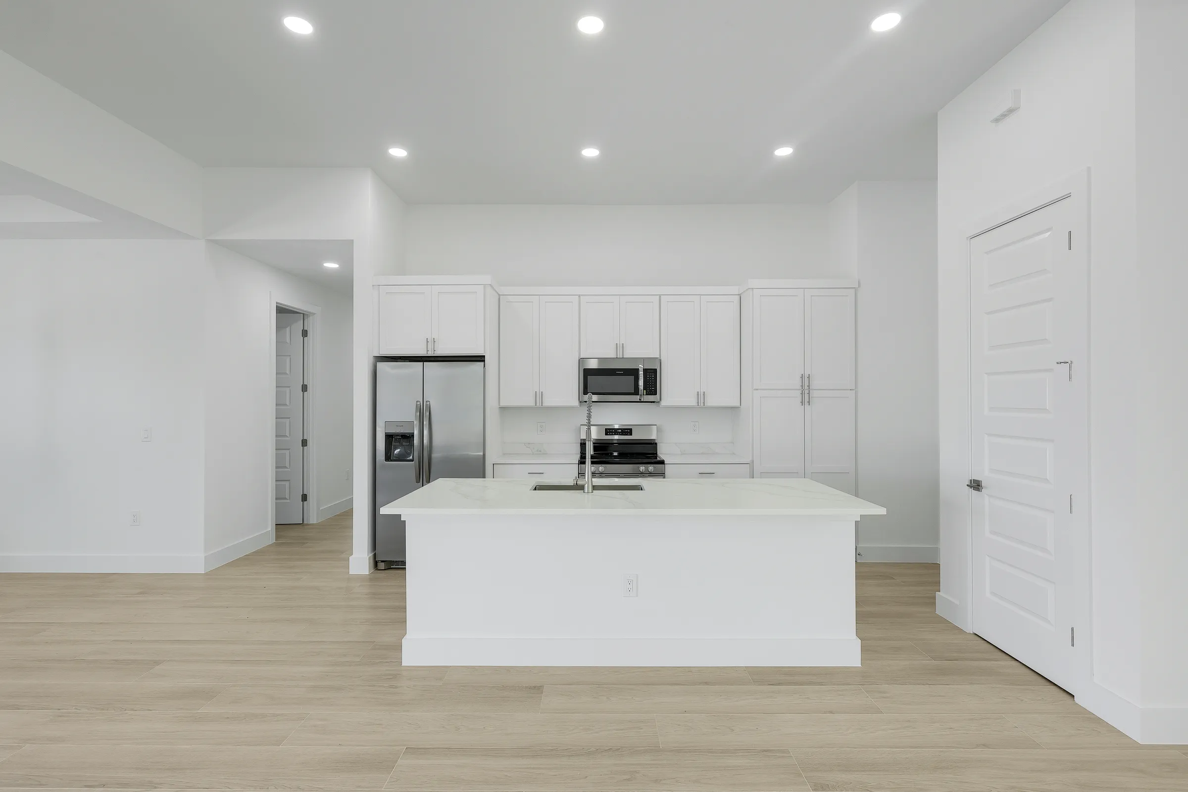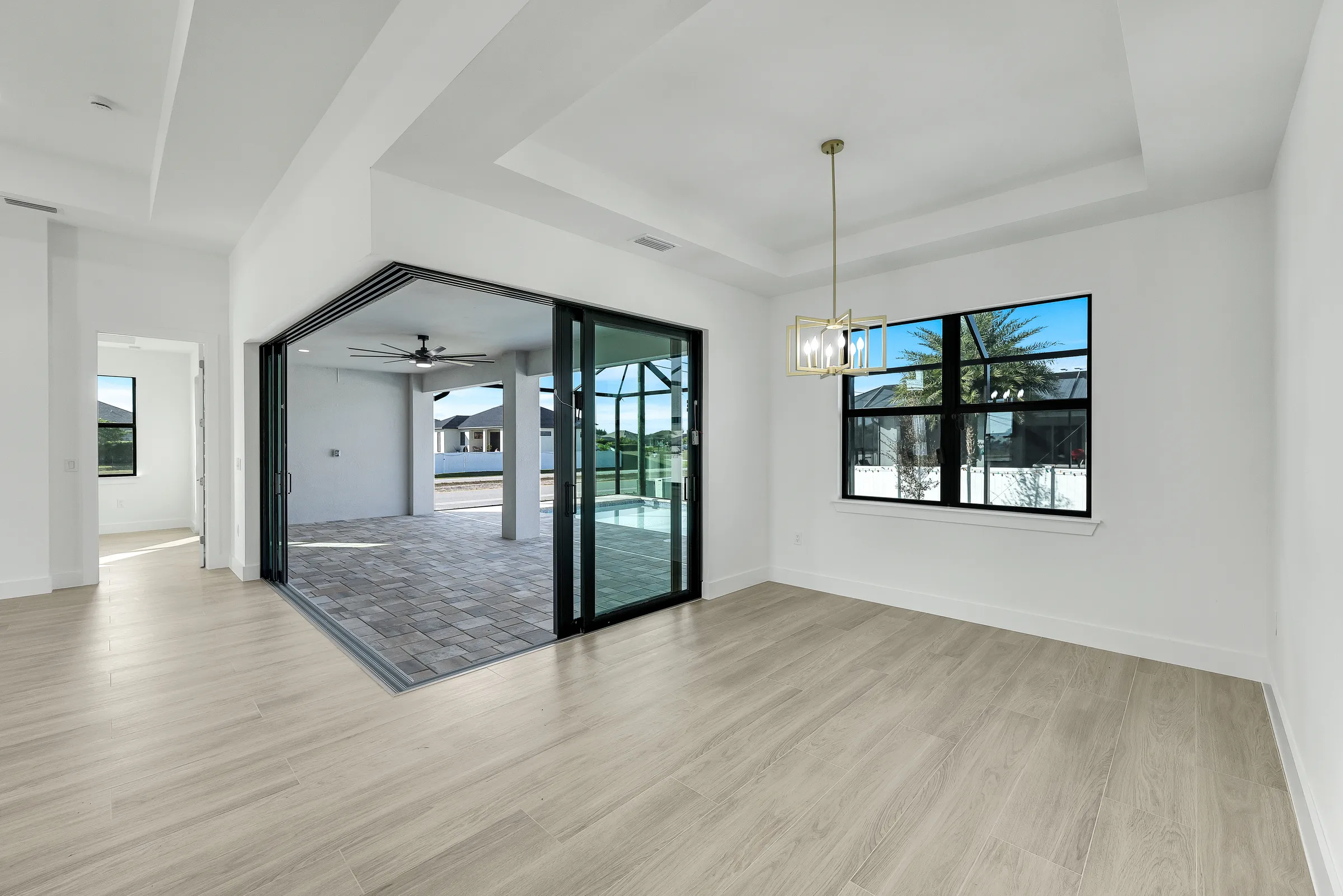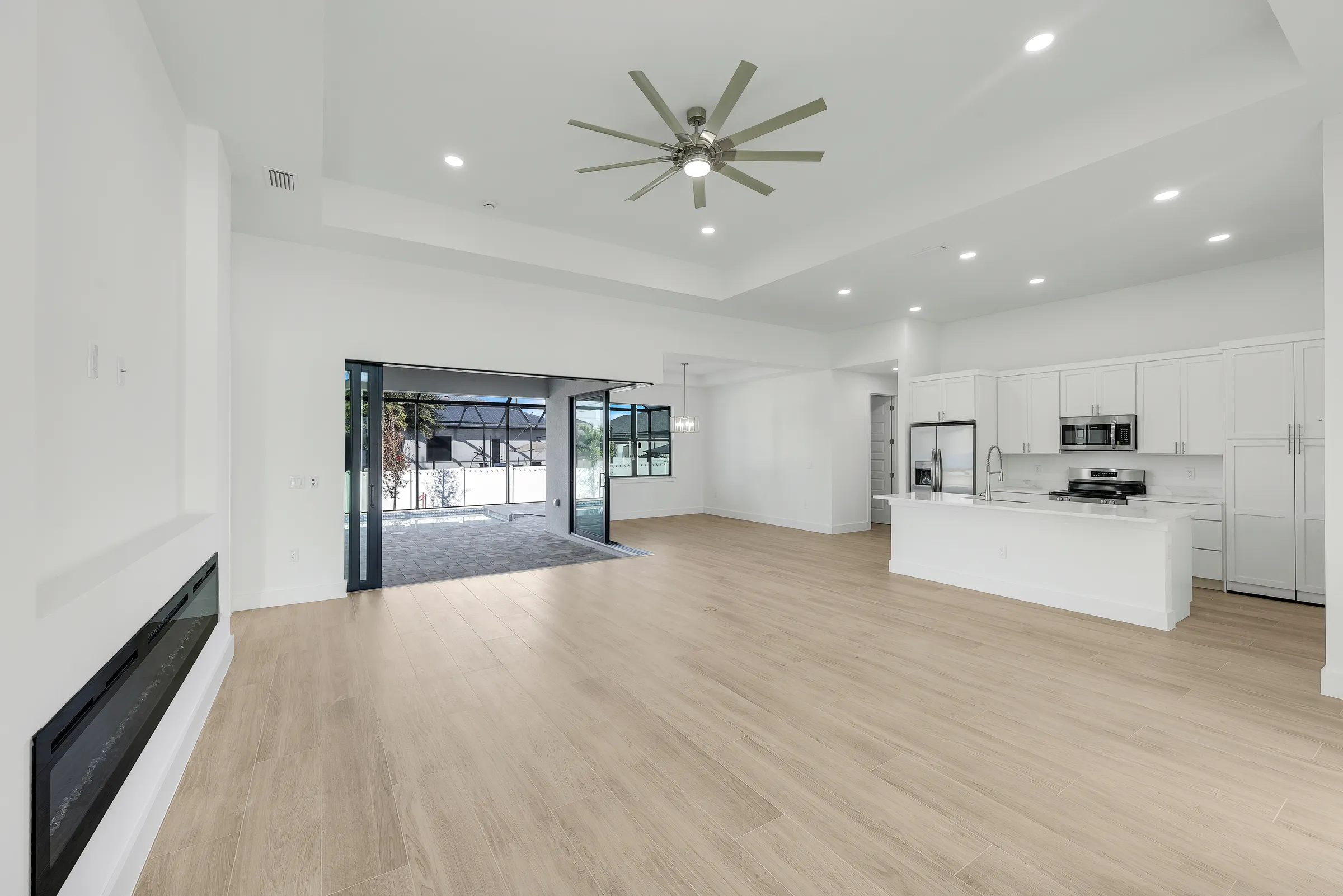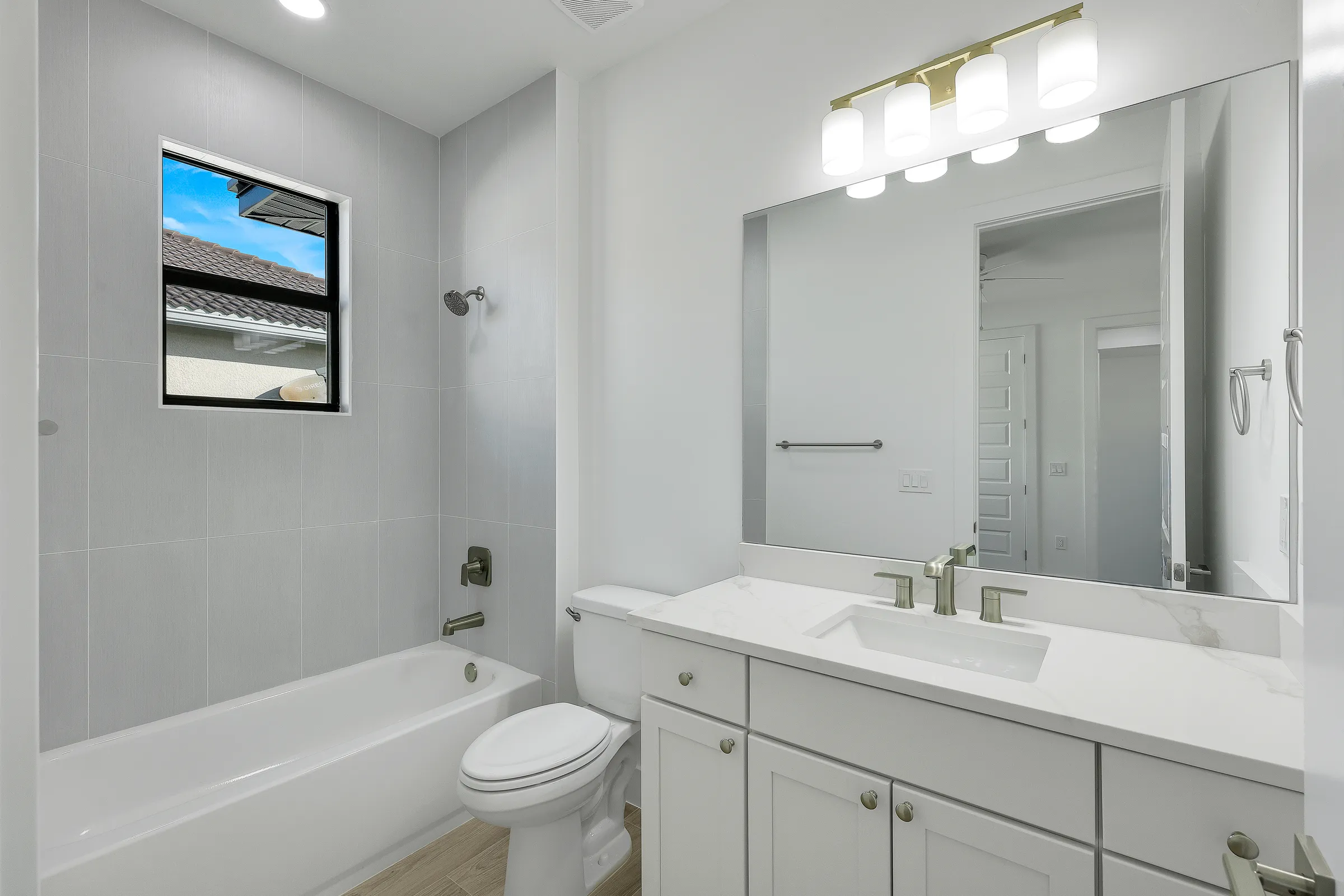 The Triton model offers a spacious 4-bedroom layout with modern finishes, impact-rated windows and doors, and durable stucco with paver driveway for strong curb appeal. Inside, you get shaker soft-close cabinets, rectified porcelain tile throughout, stainless LG kitchen appliances, and Moen fixtures for a clean, contemporary feel. Energy-efficient features like a 16 SEER Ruud HVAC system, upgraded insulation, and Cat 6 wiring help create a comfortable, tech-ready home that is built to last.